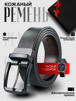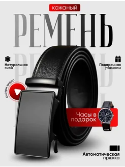 Ремень натуральная кожа черный для джинс и брюк в подарок