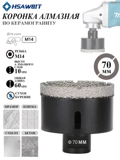 Коронка алмазная 70мм по керамограниту и мрамору для УШМ M14