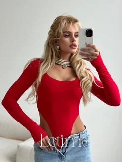 Боди с длинным рукавом вырезом утягивающее вечернее