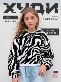 Флисовое худи на молнии с капюшоном укороченное теплое