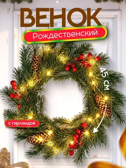 Венок новогодний на дверь с подсветкой