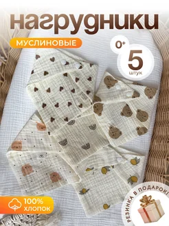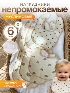 Муслиновые слюнявчики для новорожденных непромокаемые 6 шт