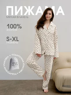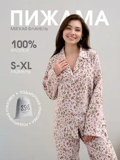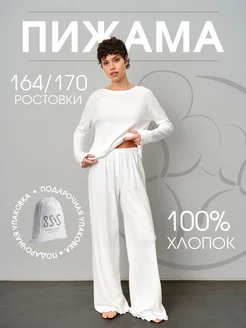 Пижама со штанами и лонгсливом из ажурного хлопка