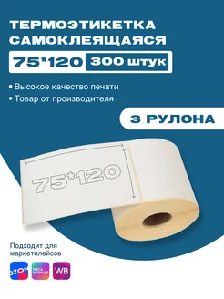 Термоэтикетки самоклеющиеся 75x120 3 рулона 900 штук