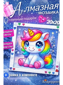 Алмазная мозаика для детей Единорог 20×20 см с рамкой