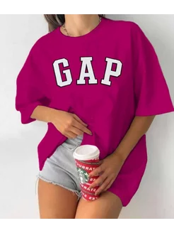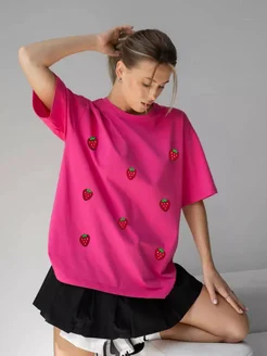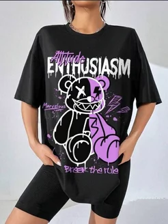 Футболка оверсайз удлиненная базовая с принтом хлопок