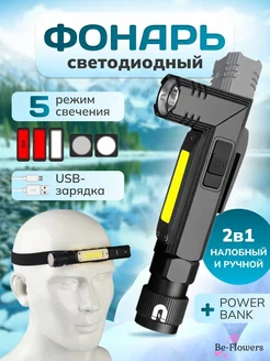 Фонарь трансформер 2 в 1, ручной, налобный