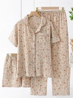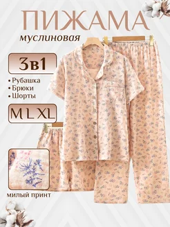 Пижама женская муслиновая со штанами и рубашкой