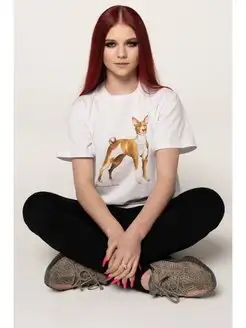 Футболка с серой собакой. Мерч коллекция Саши Трусовой