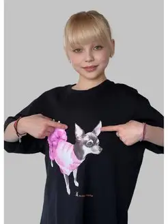 Футболка для подростков с собакой. Мерч Александра Трусова