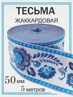 Тесьма декоративная для рукоделия Гжель 50 мм 5 м голубая