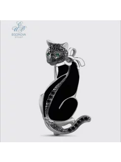 Серебряная брошь с камнями на сумку или одежду Черная кошка