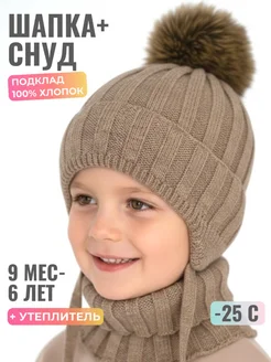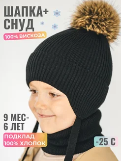 Шапка со снудом зимняя для мальчика малыша детская вязаная
