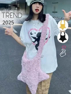 Сумка через плечо меховая кросс боди школьная Y2K