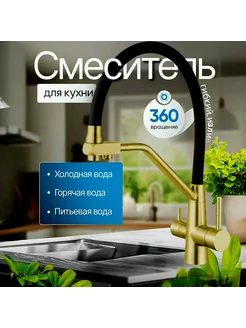 Cмеситель для кухни с гибким изливом и фильтром, матовое зол