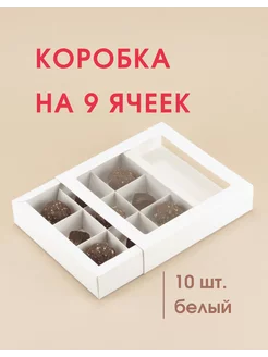 Коробка подарочная для конфет на 9 ячеек белая (10 шт.)