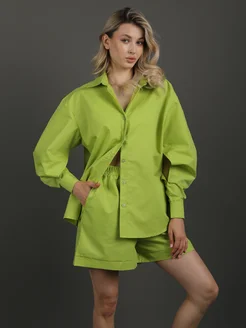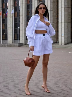 Костюм летний хлопковый рубашка с шортами оверсайз