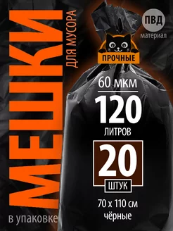 Мешки для мусора, 120 л, 20 шт, ПВД, 60 мкм, 70х110см