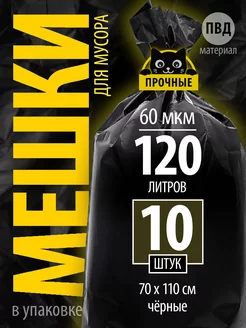 Мешки для мусора, 120 л, 10 шт, ПВД, 60 мкм, 70х110см