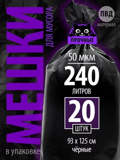 Мешки для мусора, 240 л, 20 шт, ПВД, 50 мкм, 93х125см