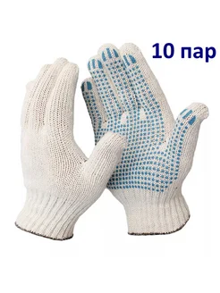 Перчатки рабочие строительные хозяйственные ХБ ПВХ 10 пар