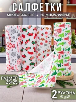Полотенца Салфетки рулон Новогодние из микрофибры 2 рулона