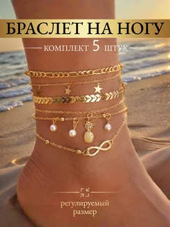 Браслет на ногу позолоченный 5 шт