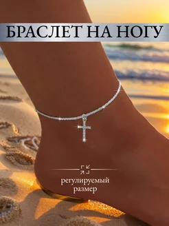 Браслет на ногу анклет с крестиком