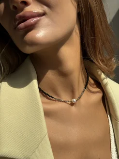 Колье чокер черный с жемчужиной