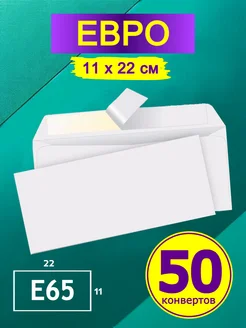 Евро конверт белый 22х11 см, 50 штук (110*220)