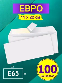 Евро конверт белый 22х11 см, 100 штук (110*220)
