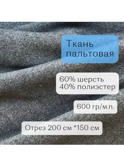 Ткань пальтовая. Цвет мокрый асфальт. Отрез в длину 200 см
