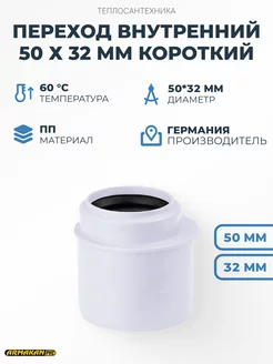 Переход внутренний 50 x 32 мм короткий
