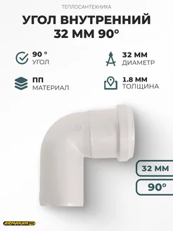 Угол канализационный внутренний 32мм 90°