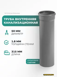 Труба канализационная внутренняя 50 х 1.8 х 315 мм (3 штуки)