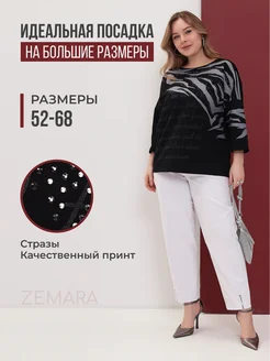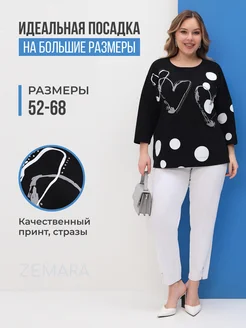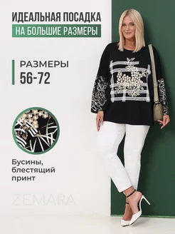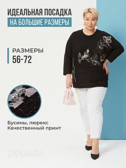 Нарядная кофта больших размеров с принтом и жемчугом