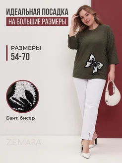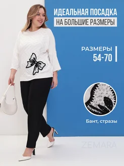Турецкая кофта большого размера с бантом и стразами