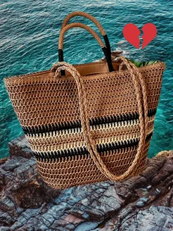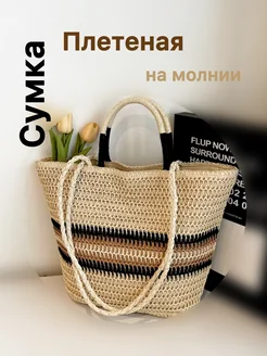 Сумка женская пляжная плетеная соломенная вязаная на молнии