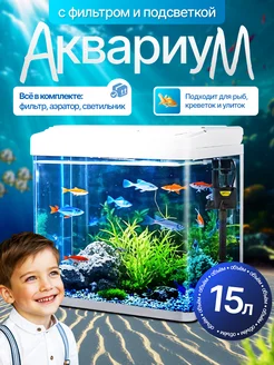 Аквариум с фильтром и подсветкой 15л. Белый