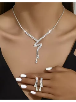 Набор свадебной вечерней бижутерии 2 в 1 колье на шею серьги