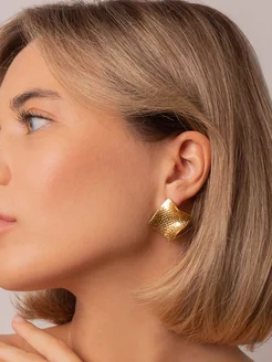 Серьги бижутерия крупные квадратные под золото