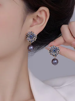Серьги бижутерия жемчуг с кристаллами