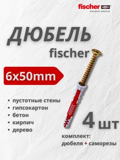 Дюбель Fischer 6x50 мм + шуруп, 4 шт