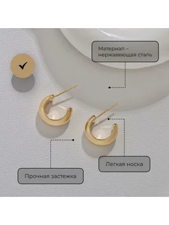 Серьги гвоздики полукольца золотистые