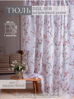 Тюль под лен в спальню 300х250