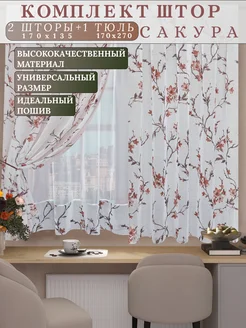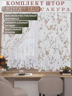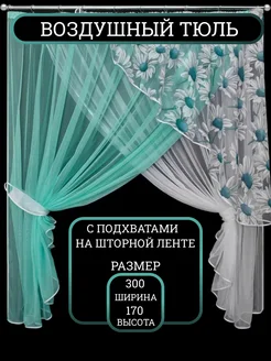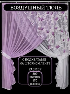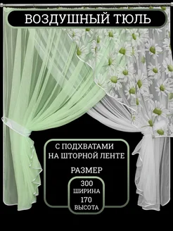 Кухонный тюль короткий 300*170 см шторы ромашка
