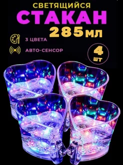 Светящийся стакан кружка сердце 4 шт