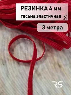 Тесьма эластичная плоская красная 4 мм, моток 3 м