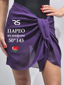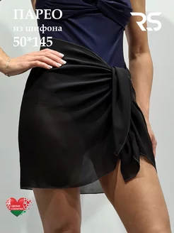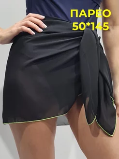 Парео пляжное из шифона черное c желтым кантом 50*145