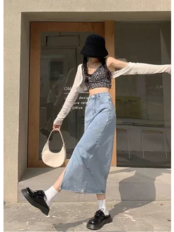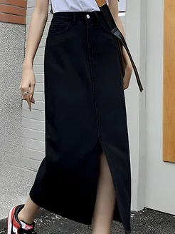 Юбка летняя джинсовая миди с разрезом спереди y2k